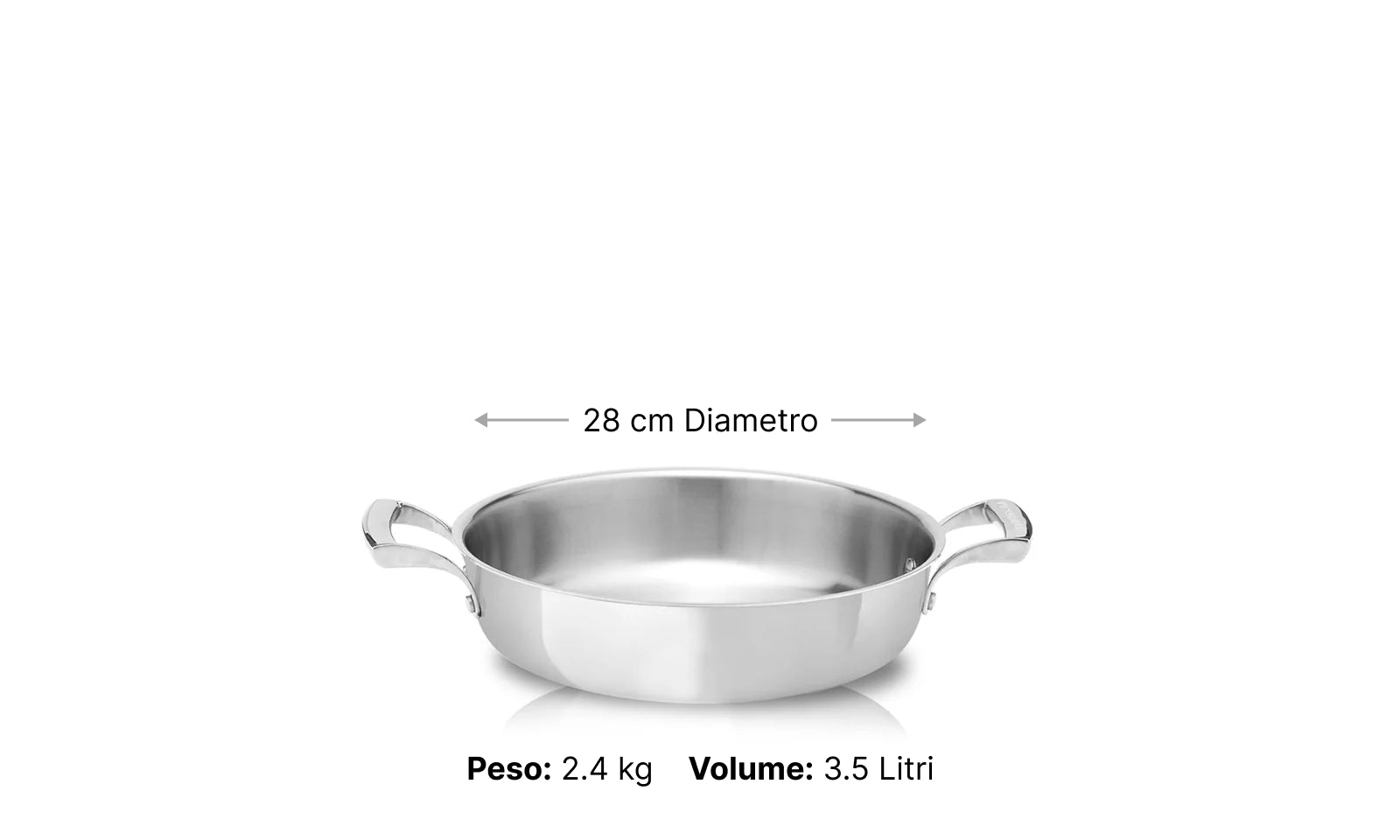 Il Tegame 2 maniglie con coperchio in acciaio inox.