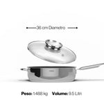 The universal Thermopower® triple base, non-deformable and non-slip with a thickness of 9 mm, ensures high thermal conductivity, reducing cooking times and enabling significant energy and cost savings. Suitable for all cooktops, including induction.
