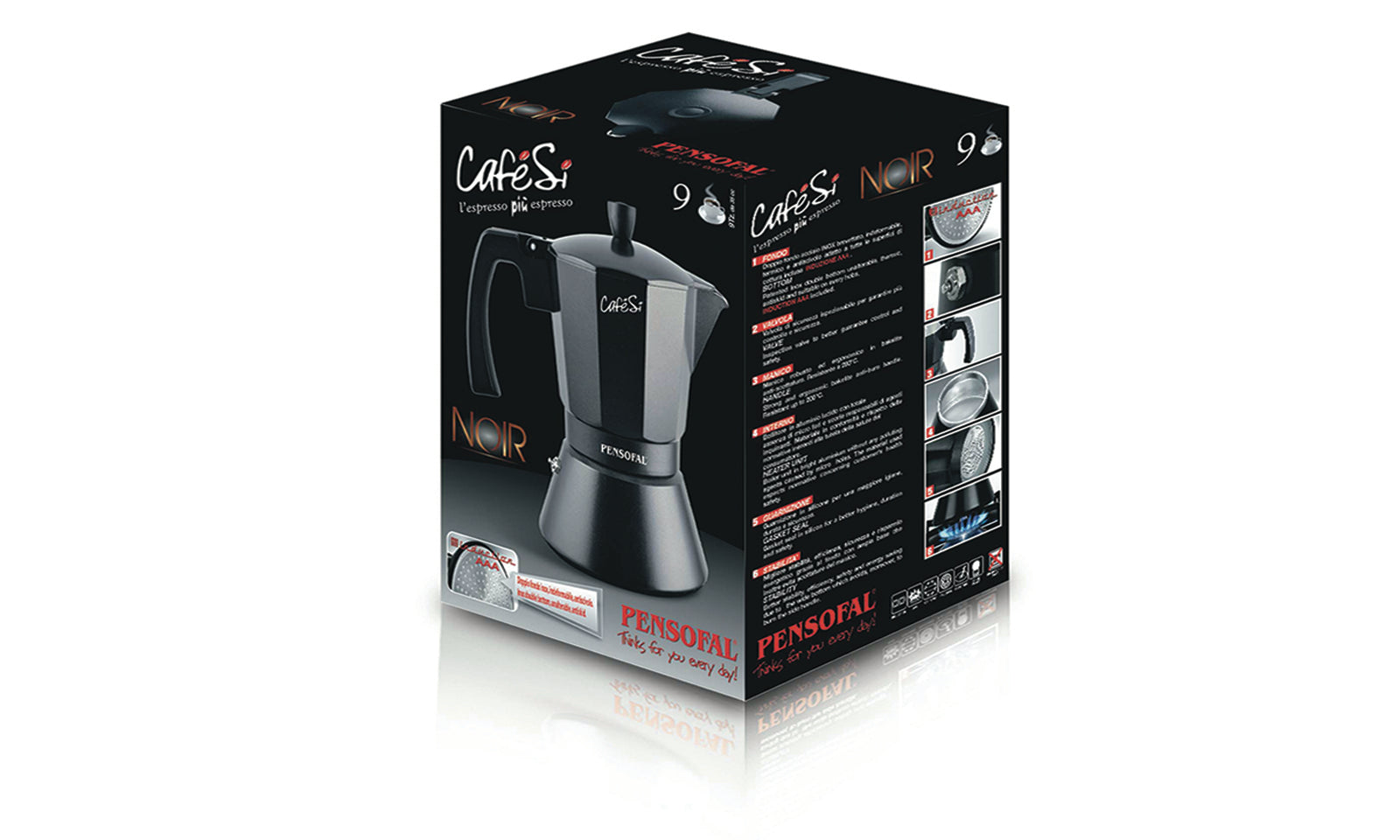 The nine-cup coffee maker from the CafèSì Noir collection is unique and original thanks to its exclusive design resulting from a fusion of aesthetic research and excellent functionality. The boiler of the coffee maker has a wide base and guarantees better performance and stability.