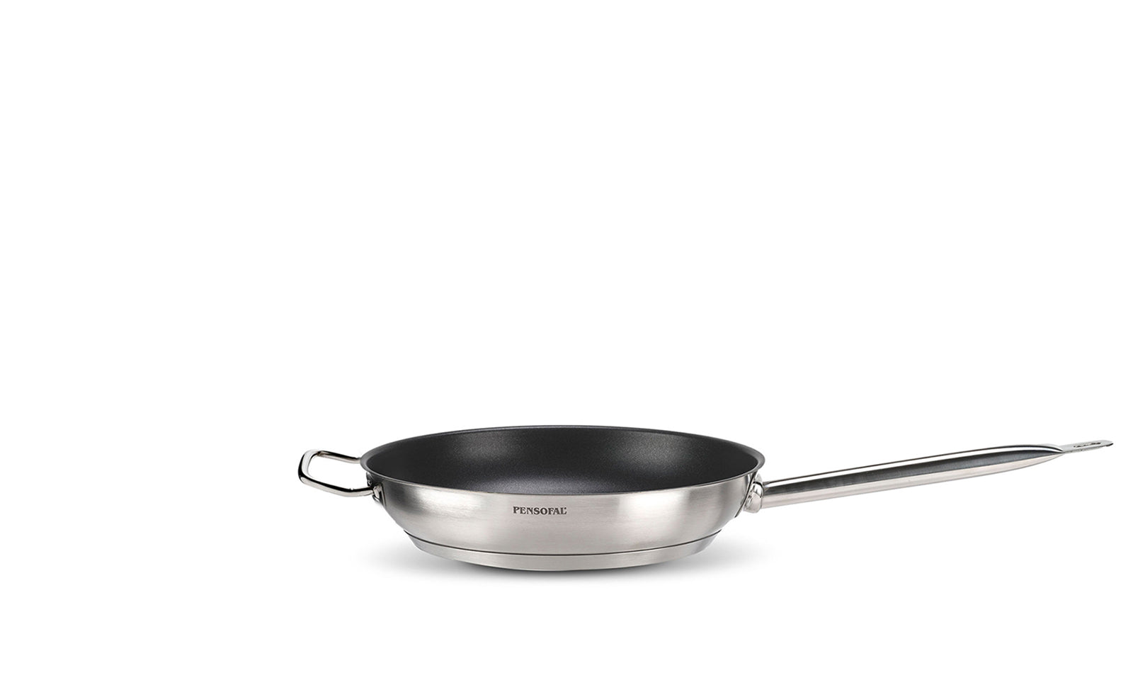 High frypan with helper in stainless steel 18/10 with non-stick inside coating BIOTANK PRO®, 6 layers, PFOA and harmful solvents free, water-based.