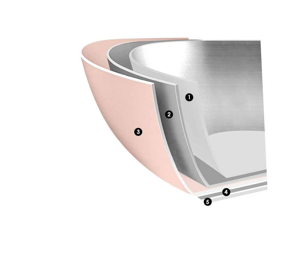 Il nostro sistema a 5 strati rende il rame adatto all'utilizzo su tutti i piani cottura compreso quelli ad Induzione