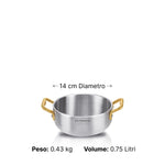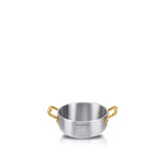 Tegamino con maniglie in ottone in alluminio riciclato 100% riciclabile spazzolato a mano, ideale per cotture intensive e di qualità.
