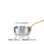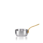 Padella mini con manico in ottone in alluminio riciclato 100% riciclabile spazzolato a mano, ideale per cotture intensive e di qualità.