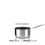 Casseruola alta con un manico inox della collezione Academy Chef Extra in alluminio riciclato 100% riciclabile spazzolato a mano.