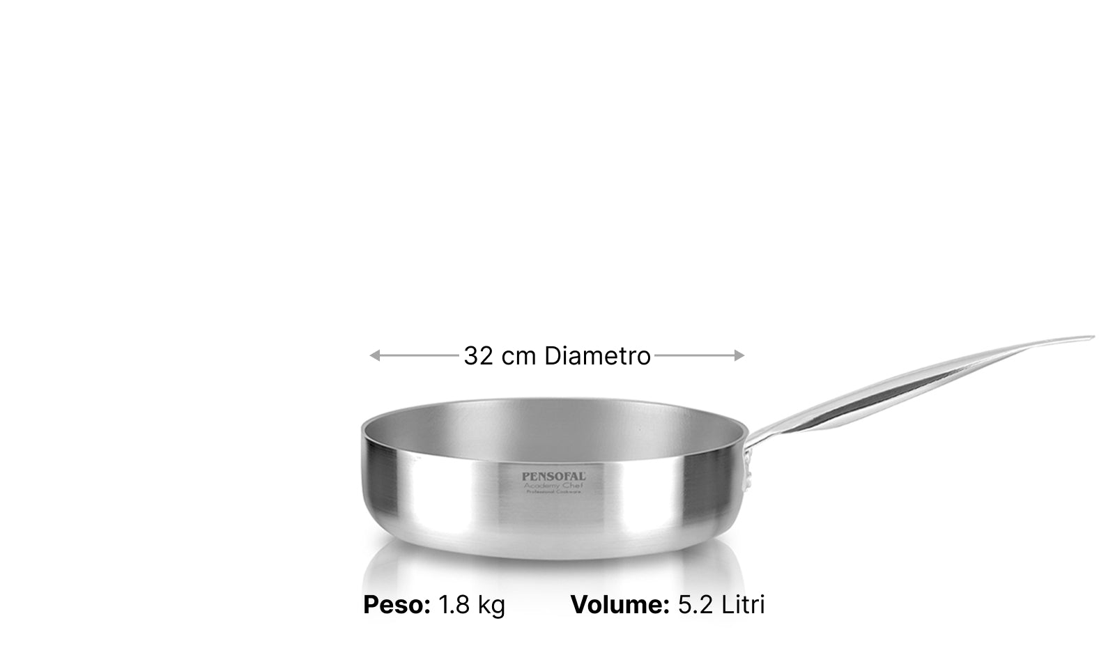 Tegame dritto della collezione Academy Chef in alluminio riciclato 100% riciclabile spazzolato a mano.